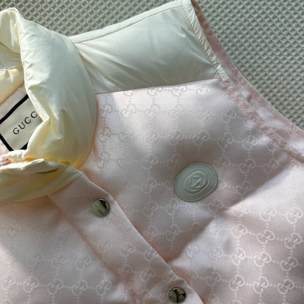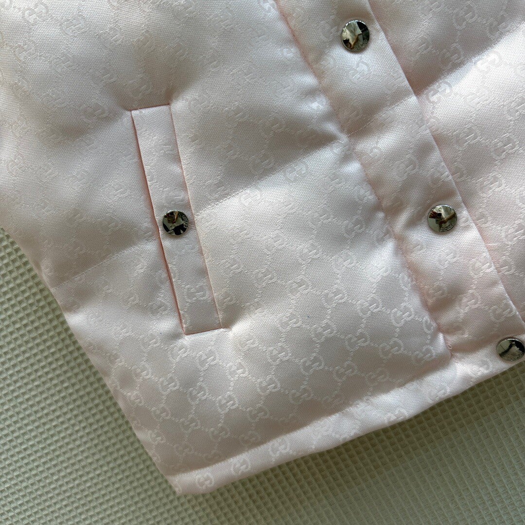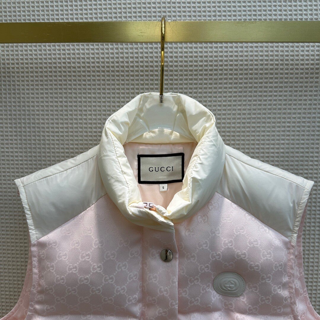G//CI jacquard letter stand-up collar down vest jacket