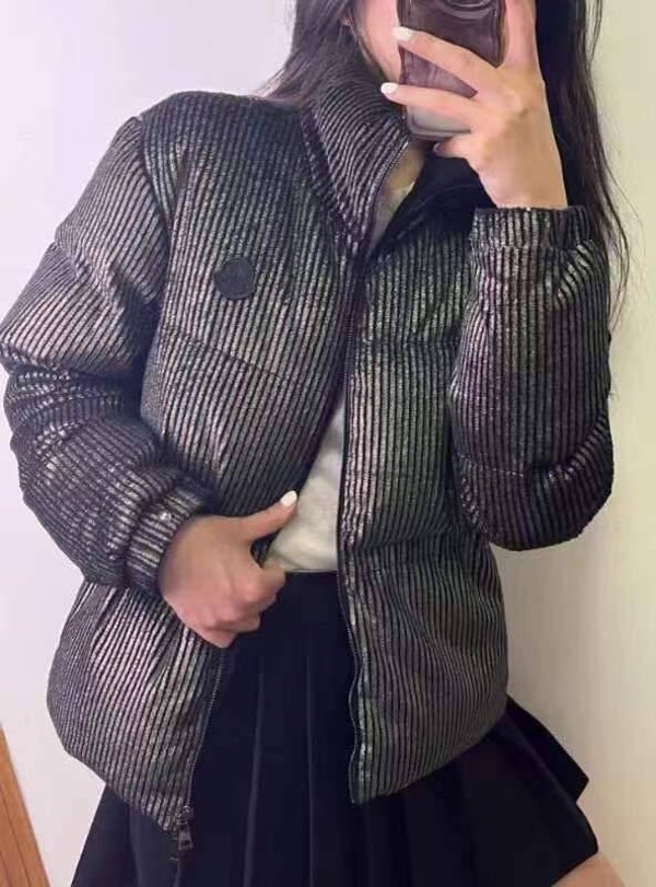 Moncle*23 winter new bread down jacket original customized heavy industry texture silver silk stand-up collar