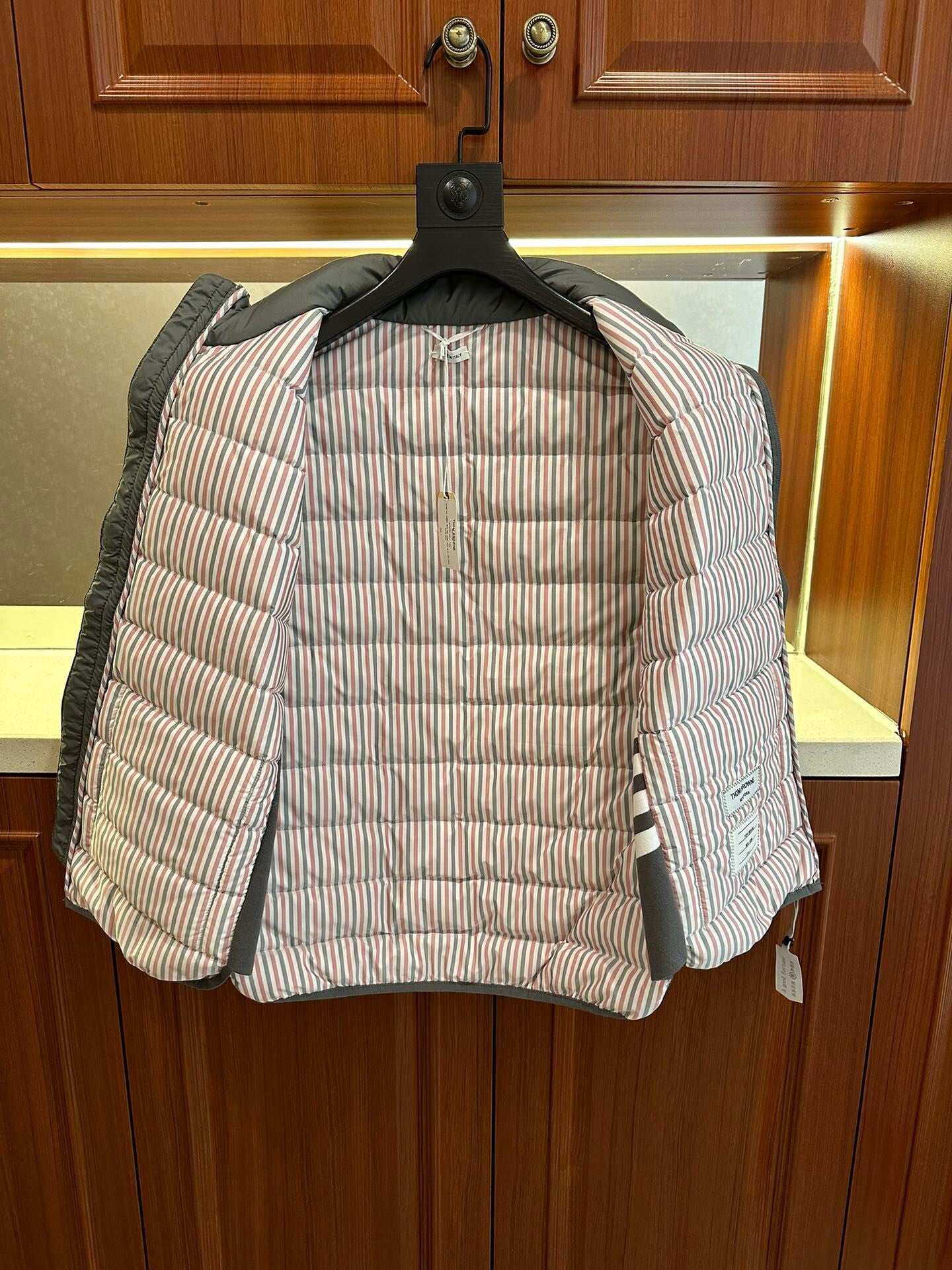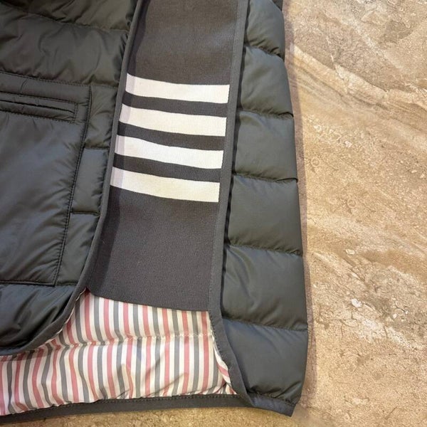 on the official website in autumn and winter of 2023, using customer-supplied 4D milk silk polyester fabric, soft and delicate upper body soft and comfortable, inner brand red, white and blue classic stripes polyester lining, side knitted vertical pit classic four bars Luxury. The inner down is thick, 90% national standard white goose down ➕10% wool, original hardware accessories, exquisite materials, original standard washed wheat head, inner shirt, sweater, shirt are all good choices, fashion high-end people must keep private channels outflow autumn and winter life versatile style size: S-XL (1-4 Size), blue, gray.