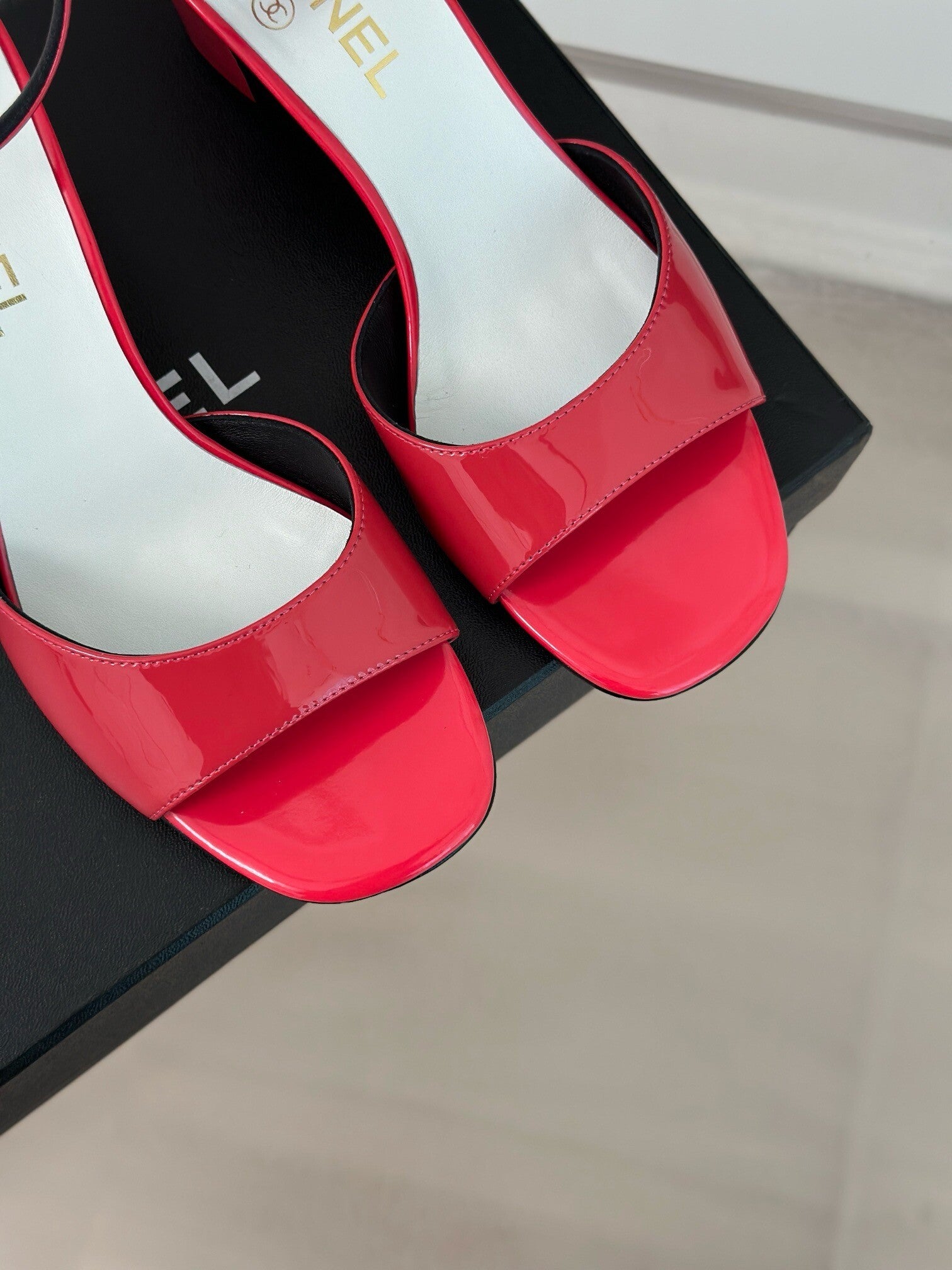 The upper is made of imported calf patent leather.