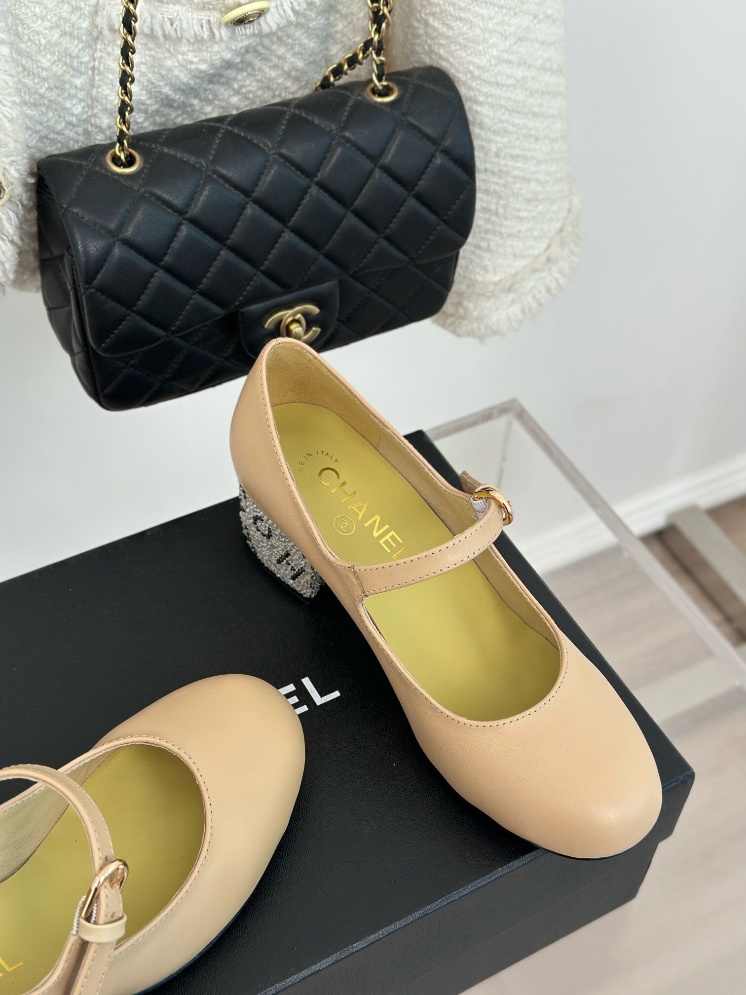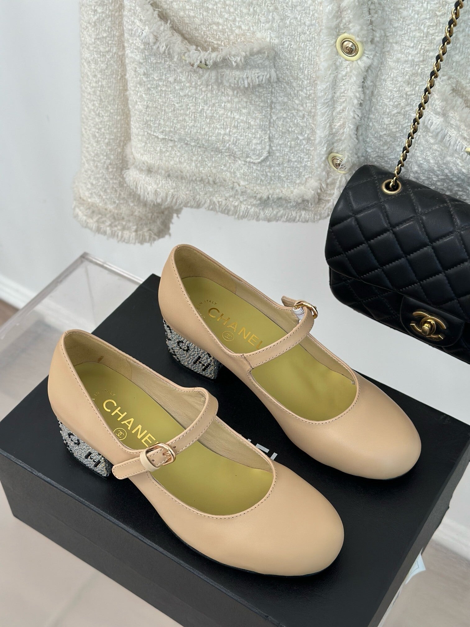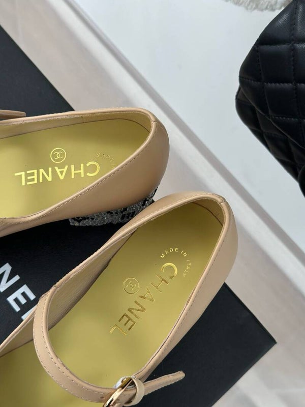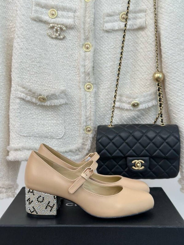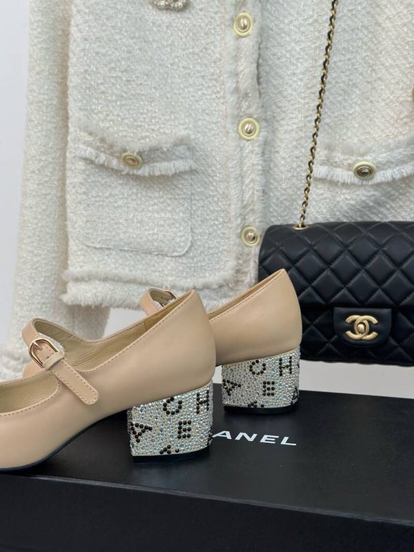 Rhinestone thick-heeled Mary Jane shoes