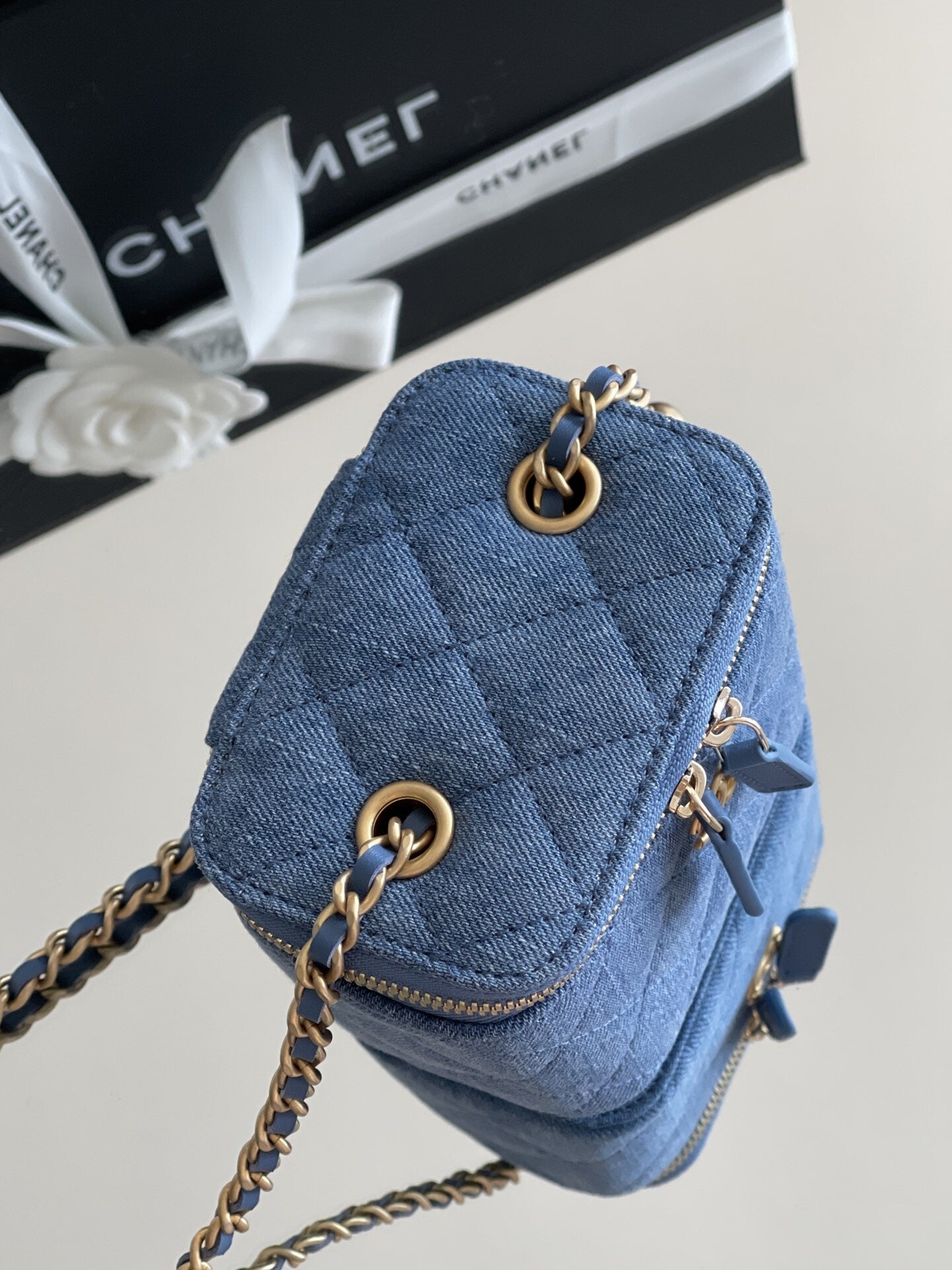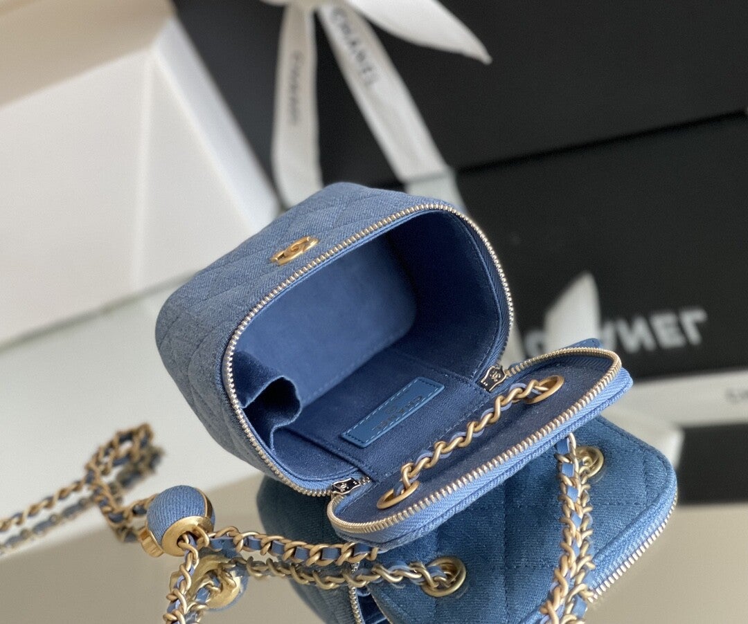 Mini denim make up bag