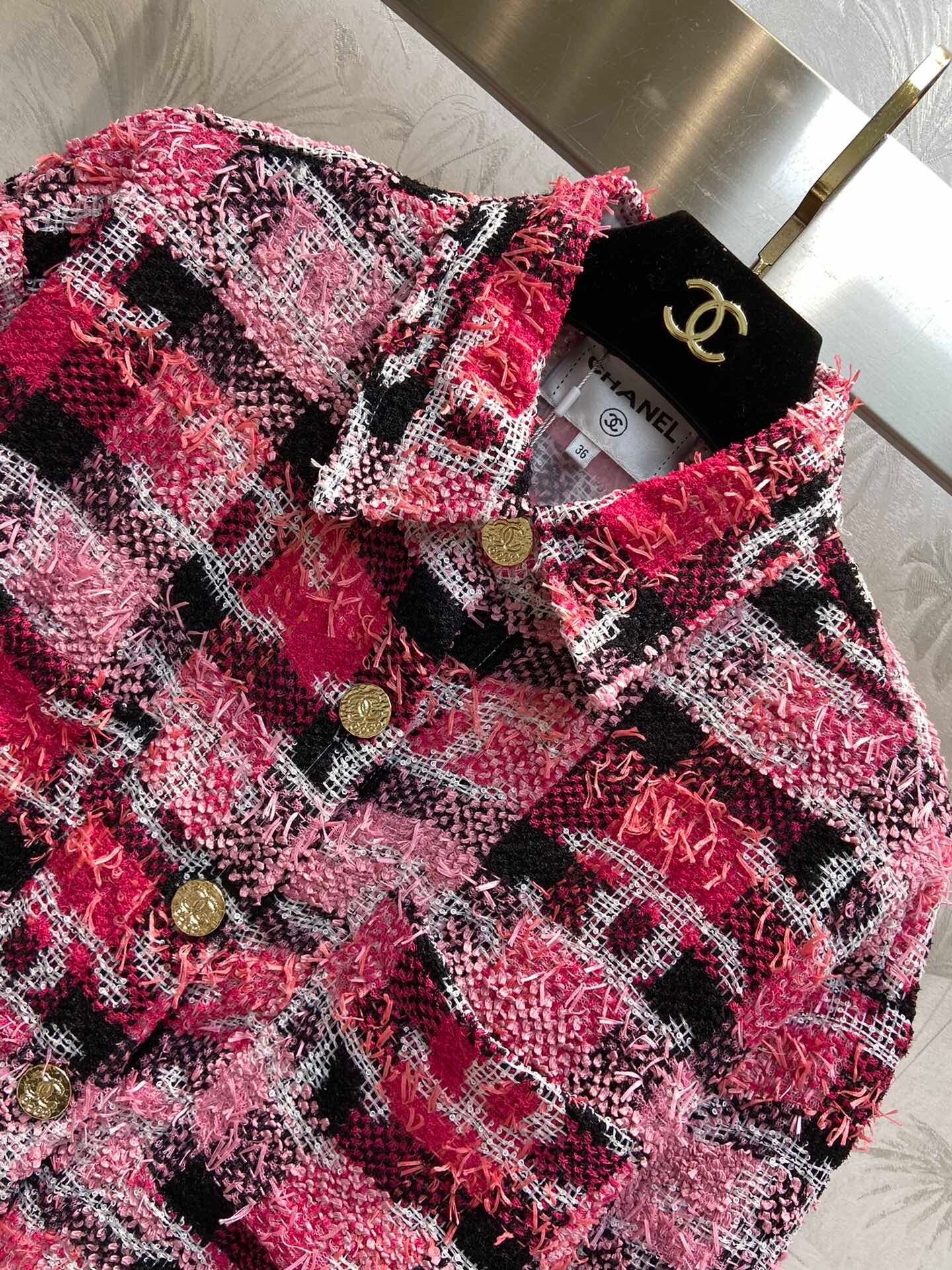 woven soft tweed big shirt BF profile version upper body looks thin and temperament celebrity daily matching fashionable items use YB to develop customized color plaid double C yarn soft tweed The Color Is Also Super Girlish Heart. Open The Advanced Sense In One Second. Eugen Yarn Lined Skin-friendly Design. One Color Three Size/36-38