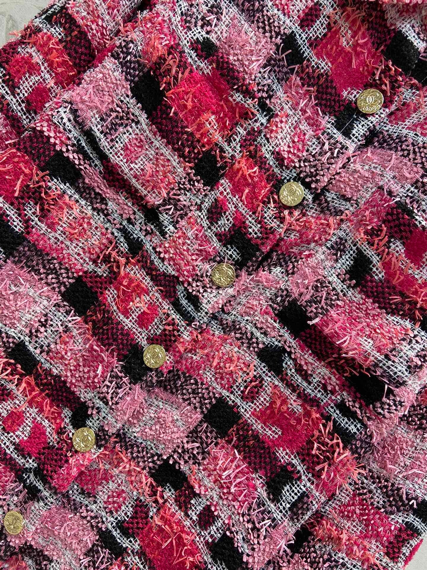 Chane*22 Island area coco beach limited series celebrity girls must-entweed plaid double C jacquard